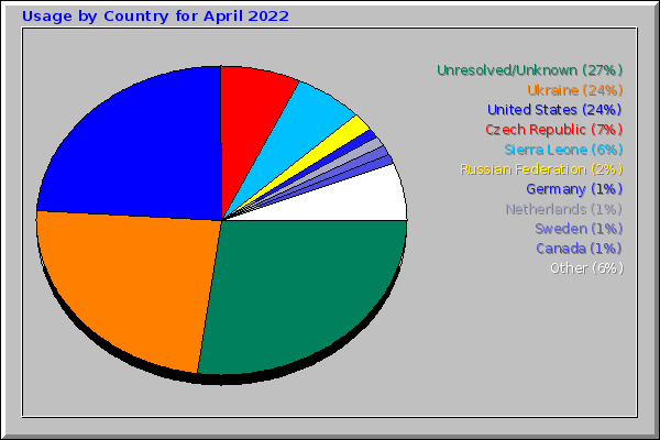 | # | Pages | Hits | Files | Volume | Country | ||||